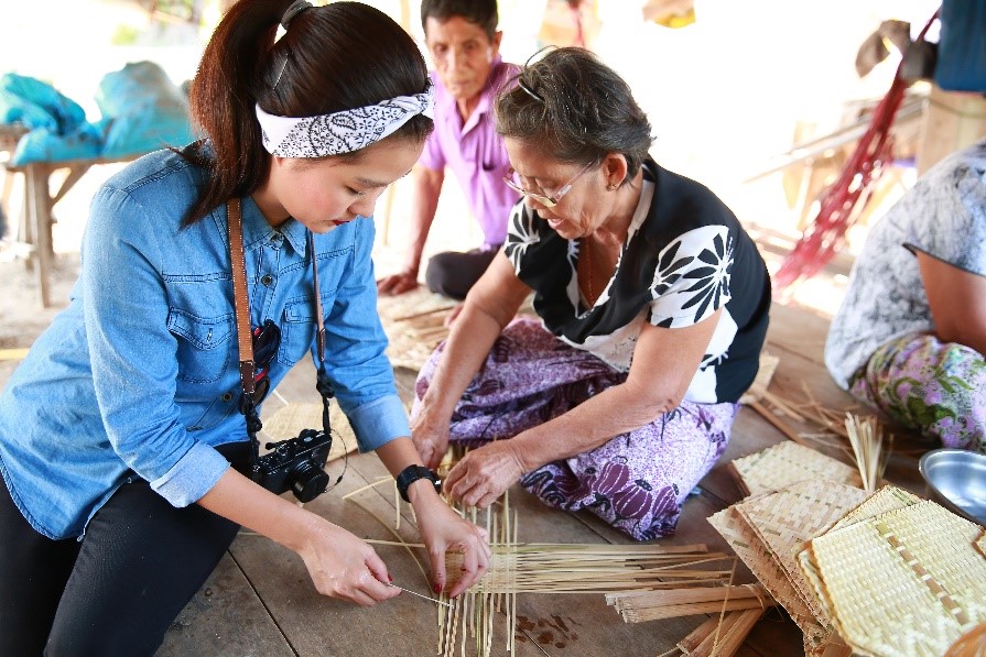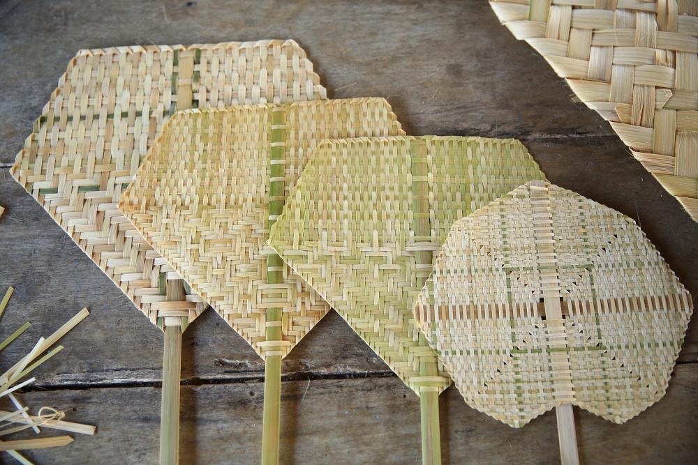 มาเที่ยวที่นี่ทั้งที ก็ต้องเรียนรู้กันอย่างลึกซึ้งนะคะ ว่าแล้วก็ให้คุณลุงคุณป้าช่วยสอนวิธีการสานพัดให้โบว์ด้วยดีกว่าค่ะ เห็นพัดเล็กๆ แบบนี้ ไม่ใช่เรื่องง่ายเลยที่จะสานออกมาได้สวย ขั้นตอนเยอะมาก แถมต้องใช้ความประณีตอย่างมากอีกด้วยค่ะ