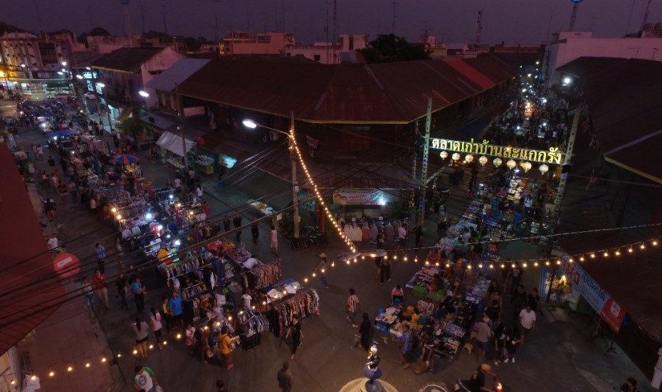 ถนนคนเดินตรอกโรงยา หรือตลาดเก่าบ้านสะแกกรัง จะเปิดทุกวันเสาร์ ตั้งแต่เวลาสี่โมงเย็นไปจนถึงประมาณสามทุ่ม มีทั้งข้าวของเครื่องใช้ อาหาร ขนม น่ากินทั้งนั้นเลยค่ะ บางอย่างหากินได้ยากมาก แต่ที่นี่ยังมีให้เราได้ชิมด้วย