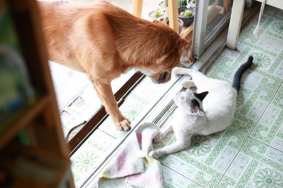 สังเกตดีๆ หน้าร้านจะมีเจ้าตัวเล็ก กับเจ้าเทโพ สุนัขสีแดงและแมวสีขาวนอนเฝ้าอยู่หน้าร้านด้วย