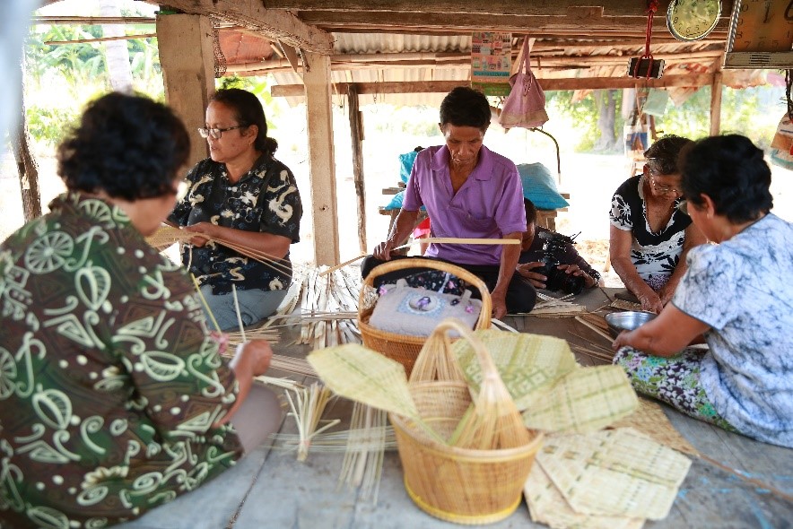 ที่บนเกาะเทโพยังมีกลุ่มจักสาน ที่หมู่บ้านตาลเอน คุณลุงคุณป้าจะรวมตัวกันทำงานจักสานจากไม้ไผ่ที่หามาได้จากรอบๆ หมู่บ้าน มาสานเป็นพัดบ้าง ตะกร้าบ้าง หรือแม้แต่เสื่อรำแพนค่ะ เป็นการนำวัตถุดิบพื้นบ้านมาสร้างประโยชน์อีกทางหนึ่ง