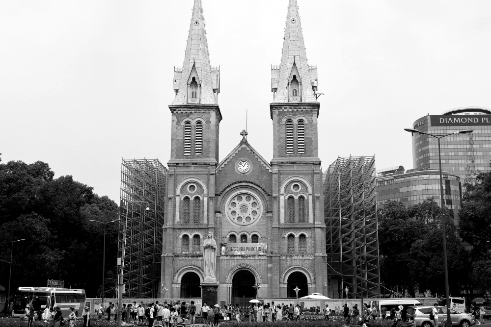 เดินจากโรงแรม ประมาน 4 โล ที่จุดแรกคือ โบสถ์ทันดินห์ (Tan Dinh Church)