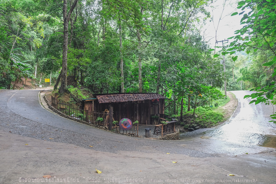 ร้านก๋วยเตี๋ยวอยู่โค้งพอดี ทางซ้ายไปกิ่วฝิ่น ทางขวากลับเข้าหมู่บ้าน