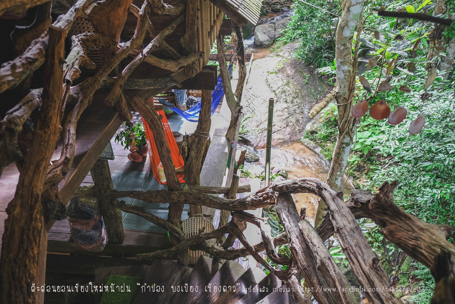 ฝนเพิ่งหยุดตก ลำธารน้ำเยอะขุ่นเล็กน้อย คืนนี้นอนฟังเสียงน้ำไหลทั้งคืน เหมือนฝนตกตลอดเวลา หลับสบายตลอดคืน ที่นี่ไม่มีพัดลม อากาศเย็นสบายนอนห่มผ้ากำลังดี ห้องน้ำมี 3 ห้อง มีเครื่องทำน้ำอุ่น ไม่มีทีวี แต่มีเต้าเสียบไฟฟ้าใช้ตลอดนะ