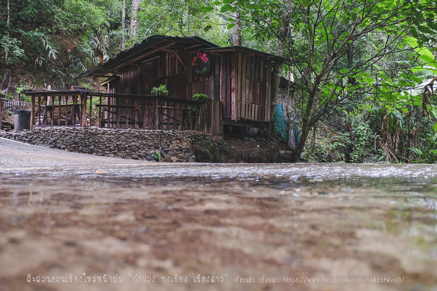 มีร้านก๋วยเตี๋ยวเล็ก ๆ น่ารักอยู่ริมน้ำตก เช้านี้ร้านยังไม่เปิด