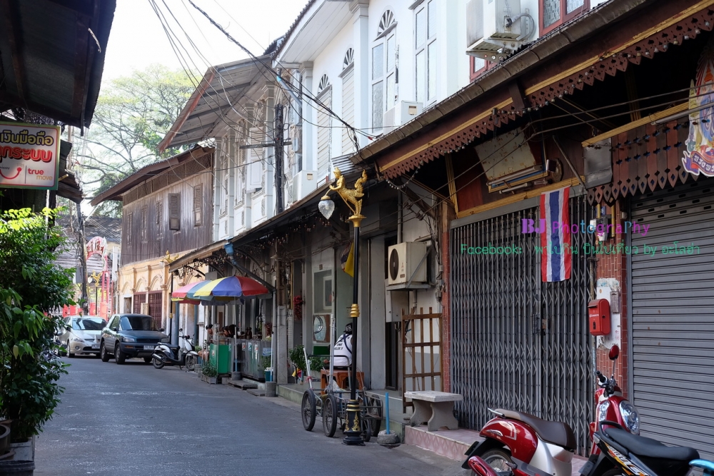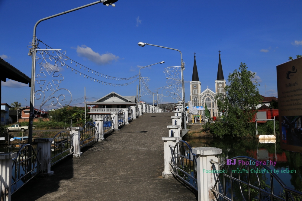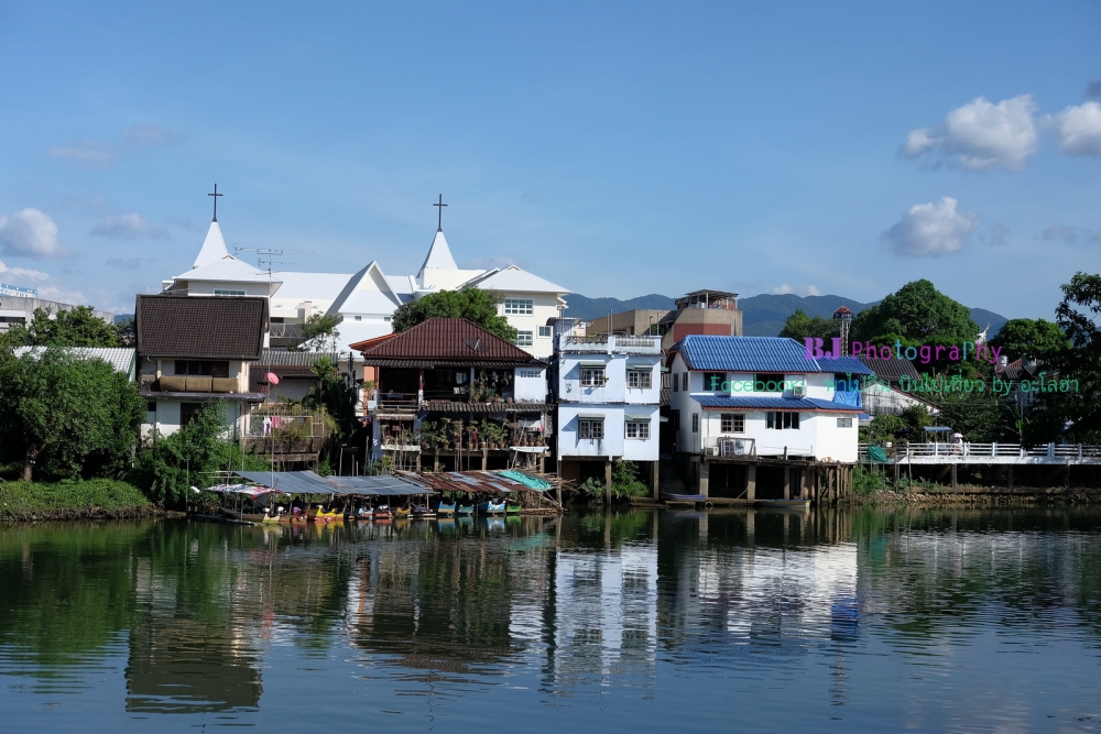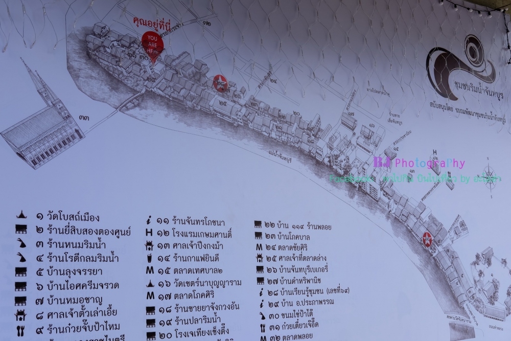 เดินข้ามสะพานไปฝั่งตรงข้ามกัน อีกฝั่งแม่น้ำของโบสถ์เป็นชุมชนเก่าริมน้ำจันทบูร