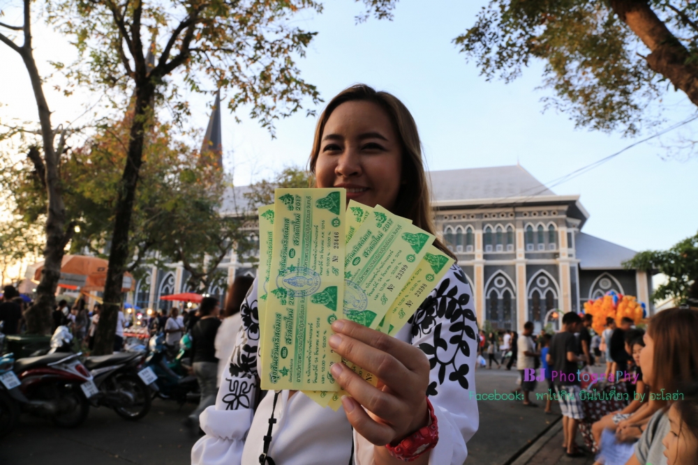 ได้ตั๋วสีเหลืองๆ ก็ไปที่บอร์ดฉลาก เอาไม้ก้านยาวๆจิ้มอันที่ชอบ จากนั้นจะมีจนท.เดินไปดึงมาลงมาให้ เปิดฉลากถ้าเป็นตัวเลขเฉยๆก็ไปแลกของรางวัลที่บู้ท ถ้าเป็นรางวัลพิเศษจะมีคำบอกรายการของรางวัลลงไปบนฉลากแทนตัวเลข เช่น เปิดมาแล้วเขียน "จักรยาน" ก็ปั่นจักรยานกลับบ้านไปได้เลย