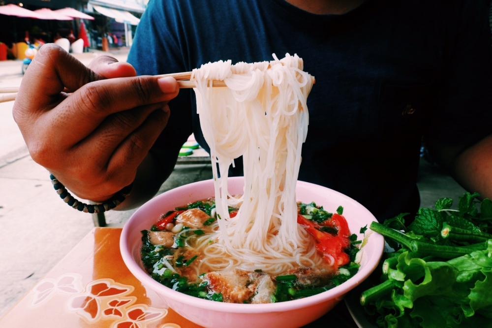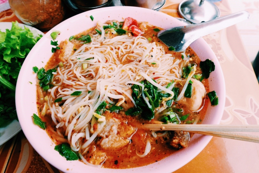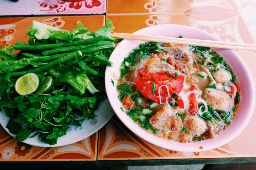 เรากลับจากบลูลากูนเวลา บ่ายสาม หาอะไรกินกันในเมือง นี้คือเฝอ ผักแน่นจริงมีนํ้าพริกไหมฮ่า