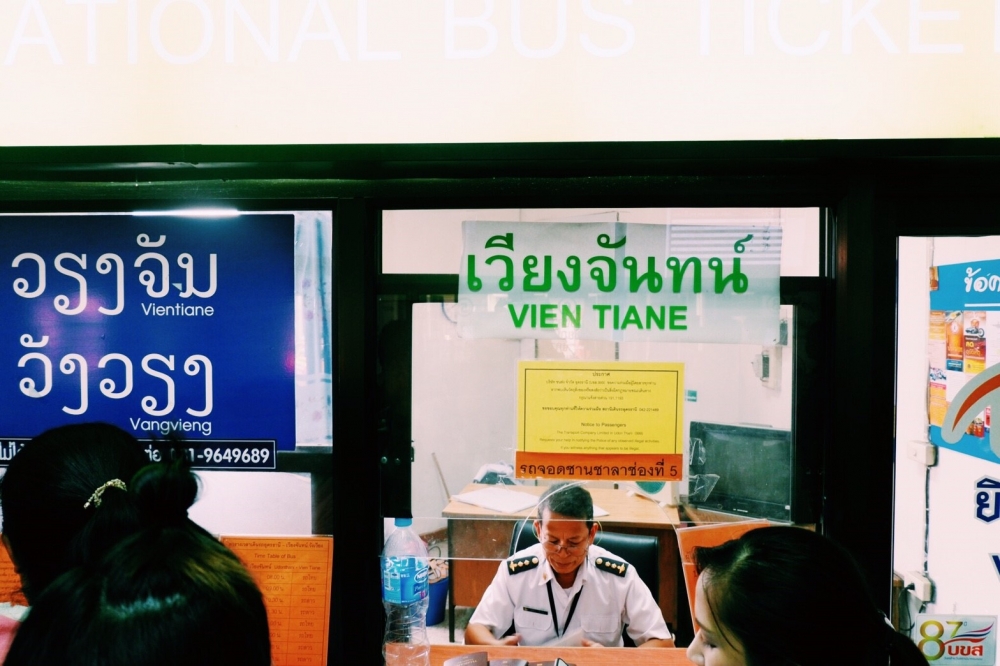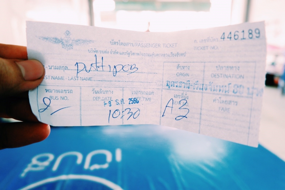 รถไปวังเวียงหมดเลยต้องจองรถไปเวียงจันทร์เพื่อหาต่อรถ ประเด็นคือไม่เคยอ่านรีวิวที่ไหนด้วยสิไปแบบถามทางเอาฮ่าๆ กว่าจะได้ซื้อตั๋ว 8 โมงแหนะ