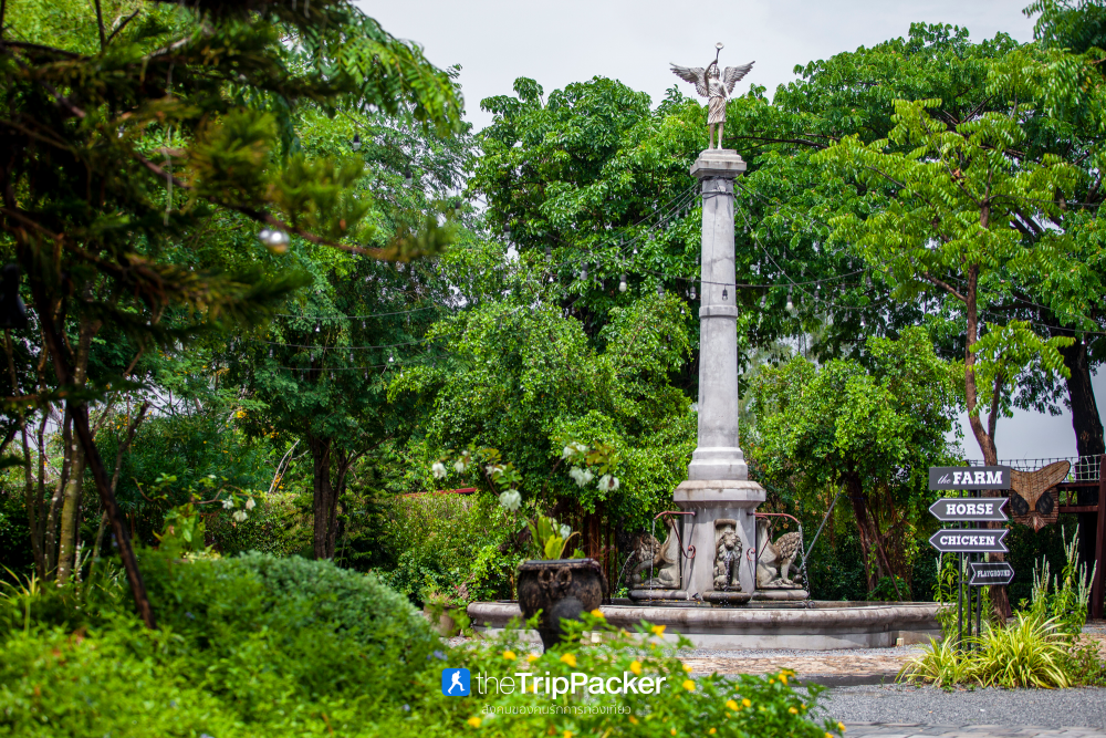 หลังจากอิ่มอร่อยกันแล้ว ก็สามารถเดินเล่นผ่อนคลายไปในสวนสไตล์ยุโรป ที่บริเวณลานน้ำพุกลางหมู่บ้านจะมีโซนให้เด็ก ๆ ได้เล่นสนุกกันอย่างเต็มที่ หรือใครที่มาเป็นครอบครัว ที่นี่ยังมีโซนฟาร์มสัตว์เลี้ยง และฟาร์มพืชผักออร์แกนิคไว้สำหรับทำกิจกรรมเวิร์คช้อปร่วมกันอีกด้วย เช่น กิจกรรมให้อาหารม้า เก็บไข่ไก่ เก็บพืชผักสวนครัว และนำมาทำอาหารในรูปแบบของเมนูเพื่อสุขภาพอย่างง่าย ๆ ที่สามารถทำได้ทั้งครอบครัว ซึ่งหากสนใจก็สามารถสอบถามแพ็คเกจ และช่วงเวลากิจกรรมที่ร้าน เปอร์ตีมาร์เช่ ได้เลย