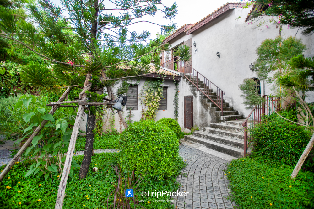 และเมื่อมาถึงแล้วเราก็จะพบกับบรรยากาศที่แตกต่างกับด้านนอกอย่างสิ้นเชิง ราวกับว่าเราเข้ามาอยู่ในหมู่บ้านชนบททางยุโรปที่ไหนสักแห่ง ที่นี่เต็มไปด้วยความร่มรื่นของต้นไม้สีเขียวดูเย็นสบาย แต่ด้วยการตกแต่งแบบยุโรปคลาสสิคกลับให้ความรู้สึกที่อบอุ่น ทั้งทางเดินอิฐบล็อก รูปปั้นปูนเปลือยที่ประดับอยู่ตามมุมต่าง ๆ แนวกำแพงหินที่เว้นเป็นช่องประตูโค้งตามทางเดินเป็นระยะ ๆ ไม้เลื้อยนานาชนิดที่พาดพันกันไปมา มองแล้วให้ความรู้สึกลึกลับ แต่กลับสวยงามอย่างบอกไม่ถูก เรียกว่ากว่าจะเดินไปยังร้านต่าง ๆ ได้นั้น ต้องใช้เวลาพอสมควร เพราะแต่ละจุดนั้นน่าแวะถ่ายรูปเสียจริง ๆ