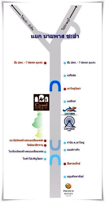 Camel Republic(คาเมล รีพับบลิค) ตั้งอยู่ที่ ชะอำ จังหวัด เพชรบุรี อยู่ฝั่งตรงข้ามเยื้องๆกับ ซานโตรินี่