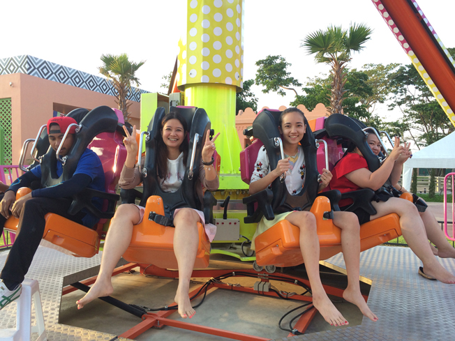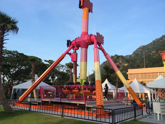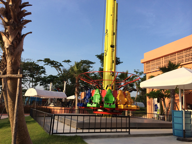 เครื่องเล่นถัดมาเป็นเครื่องเล่นที่ไม่หวือหวามาก แต่ก็เสียวเหมือนกัน ชื่อว่า ดร๊อปทวิส (Drop Twist) เครื่องนี้มองจากด้านนอก ดูเบาๆ เป็นที่นั่งหมุนแล้วก็ขึ้น แล้วก็ดร๊อปเราลงมา อาจไม่สูงมาก แต่ความรู้สึกหวิวๆมากเหมือนกันนะครับ