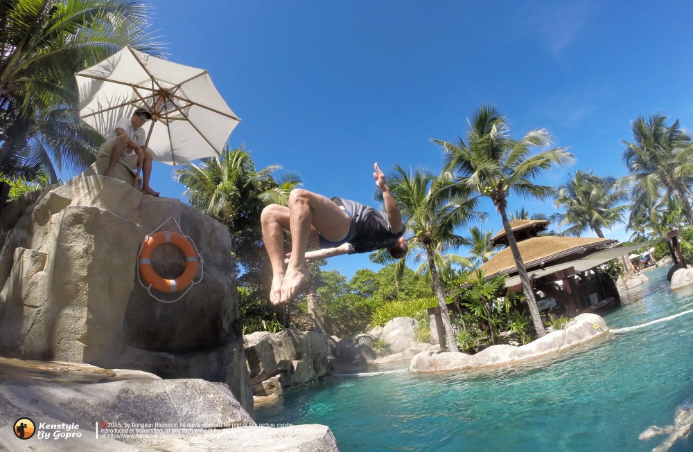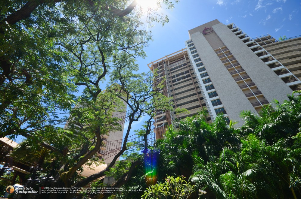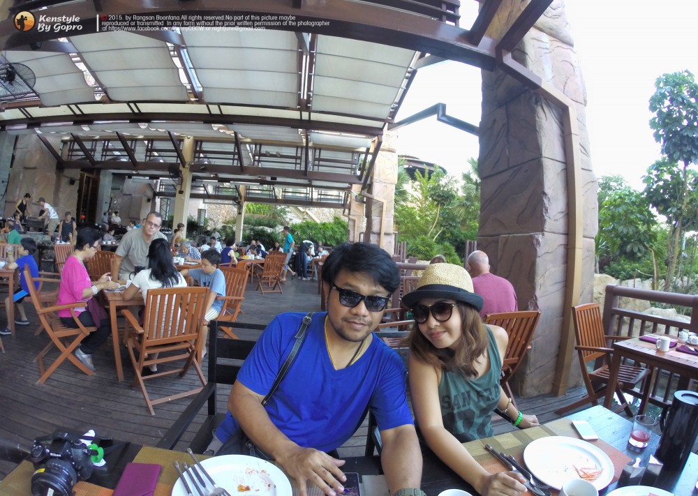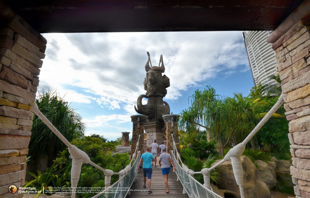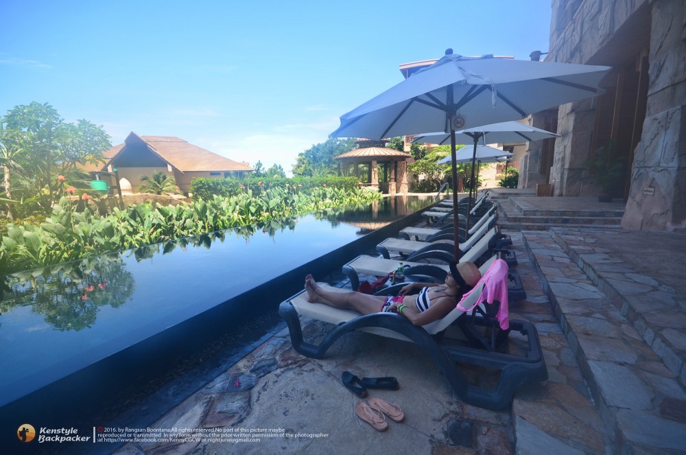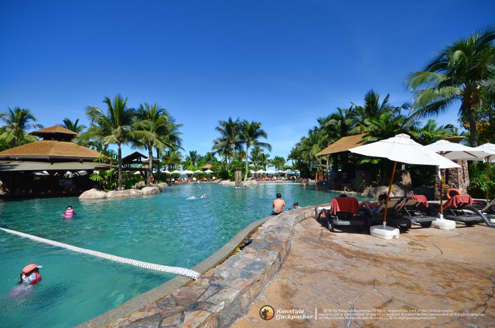 ภายใต้อุโมงค์ ด้านขวาจะเป็นห้องอาหารอะควา และ counter check in ผมจองห้อง deluxe ocean facing ไว้ จัดแจง check in เรียบร้อยขึ้น lift ไปยังห้องพักซึ่งอยู่ชั้น 3 ภายในห้องพักตกแต่งเป็นธีมซาฟารีโดยแท้ โทนสีของห้องเป็นโทนสีน้ำตาลดูอบอุ่น เตียงนอนออกแบบเหมือนเป็นเตียงไม้ไผ่ ผนังห้องเป็นภาพต้นไม้แกะสลักเป็นภาพนูนต่ำชิดไปยังผนังที่เป็นรูปแผ่นหิน โต๊ะเก้าอี้วัสดูเป็นไม้ มีโคมไฟให้แสง warm light ประดับตามมุมต่างๆ มีเก้าอี้นอนเล่นเล็กๆสำหรับเปลี่ยนบรรยากาศ ตัวห้องน้ำแยกออกเป็นห้องอาบน้ำและห้องส้วมคนละห้อง วัสดุที่ใช้ตกแต่งภายในห้องพักดูเรียบง่ายกลมกลืนกับธีมที่เป็นธรรมชาติดี