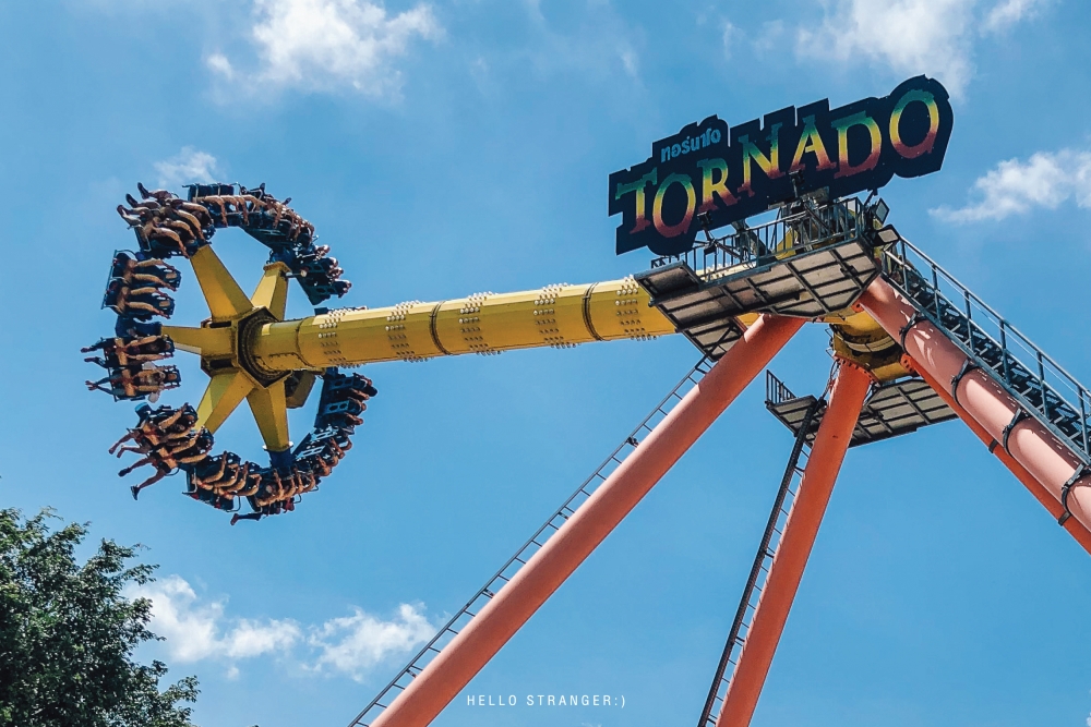 Tornado-ทอร์นาโด เป็นอีกหนึ่งเครื่องเล่นยอดฮิตที่ต้องต่อแถวยาวเป็นหางว่าว เพราะมันสนุกมาก กรี๊ดจนเสียงแหบ ตื่นเต้น หวาดเสียวเหมือนอยู่ท่ามกลางพายุ ที่ดูดเราขึ้นไปหมุนกลางอากาศ