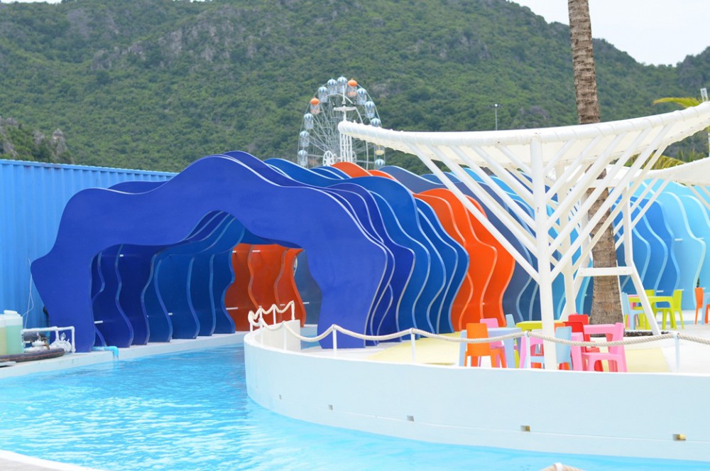 สามารถนั่งห่วงยางวนในน้ำได้เลยครับ สบายดี ภาพจาก Facebook Santorini Water Fantasy