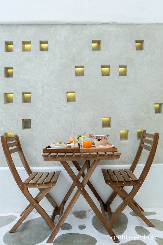 Santorini Play 'n Stay Package ที่จะได้รับคือห้องพักพร้อมอาหารเช้า และบัตรเข้าสวนน้ำ 2 ใบ