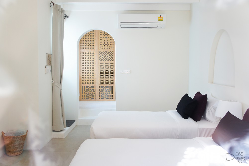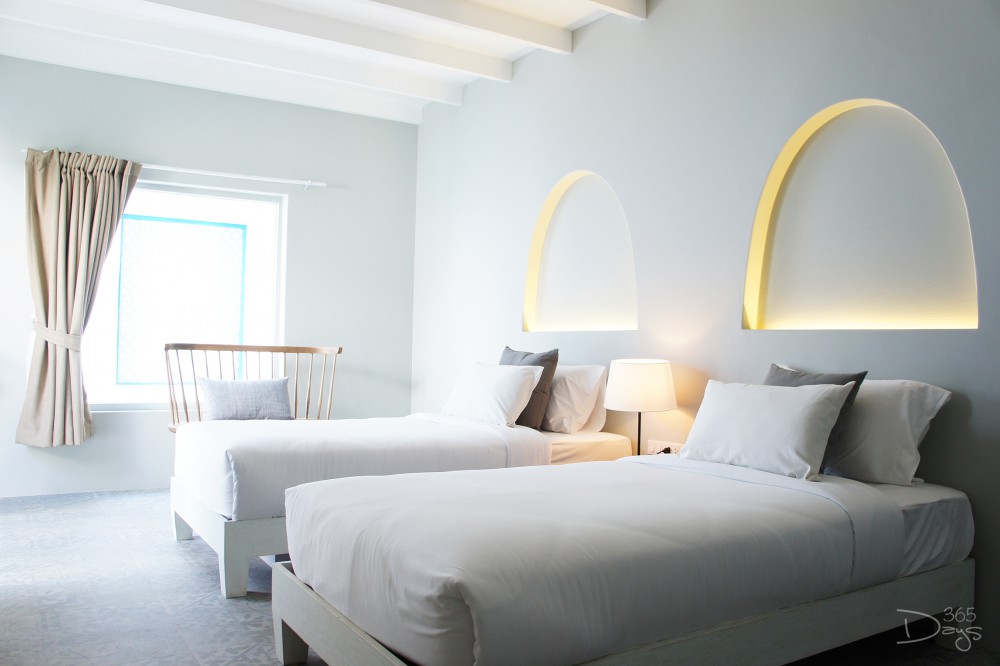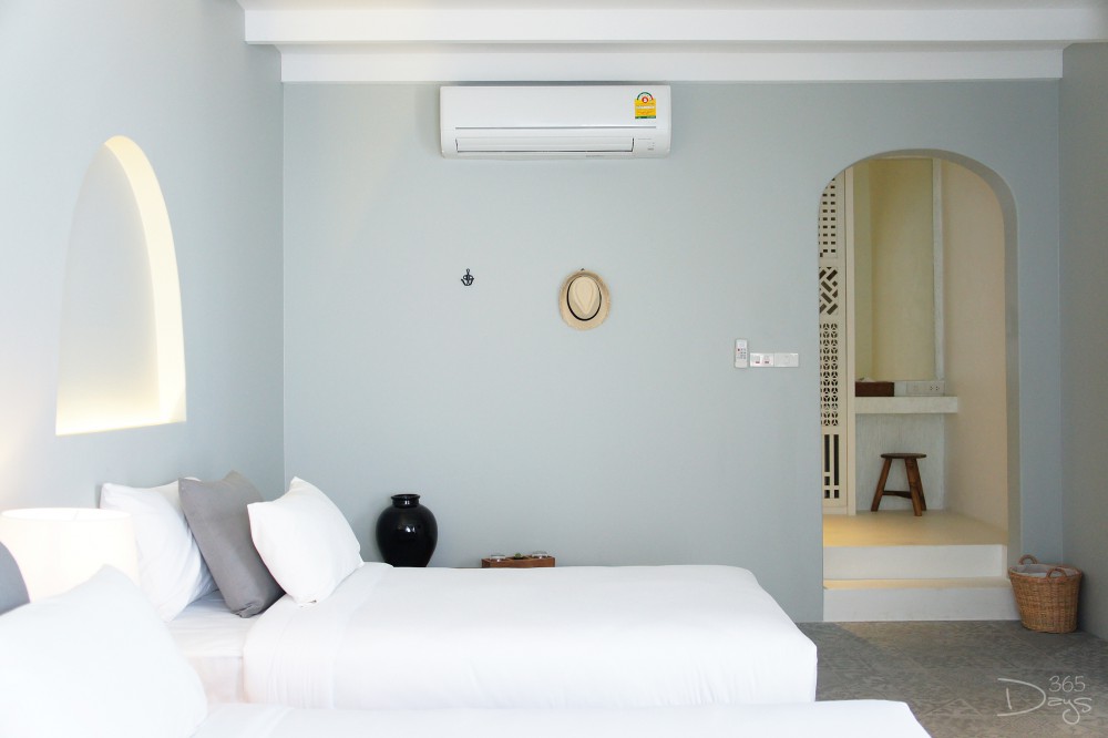 เราแอบรู้มาว่า ห้องพักแต่ละห้องนั้นจะมีสไตล์การตกแต่งไม่เหมือนกันซักห้อง ดังนั้นความสนุกของการเข้าพักที่ Santorini Park ‘Stay’ ก็คือการได้ลุ้นว่า ห้องที่เราจะได้เข้าพักในแต่ละครั้งจะสวยและต่างไปอย่างไร