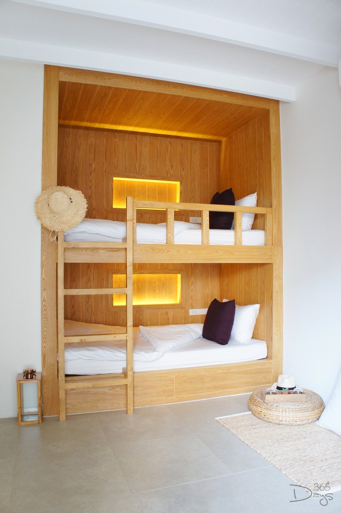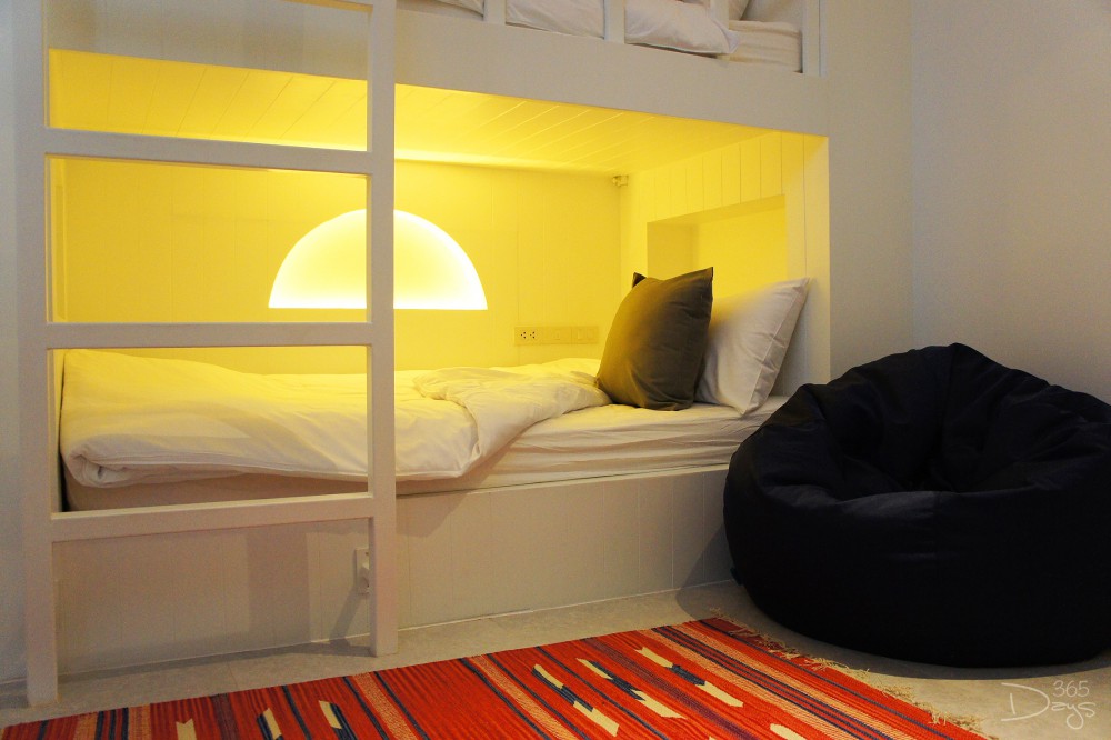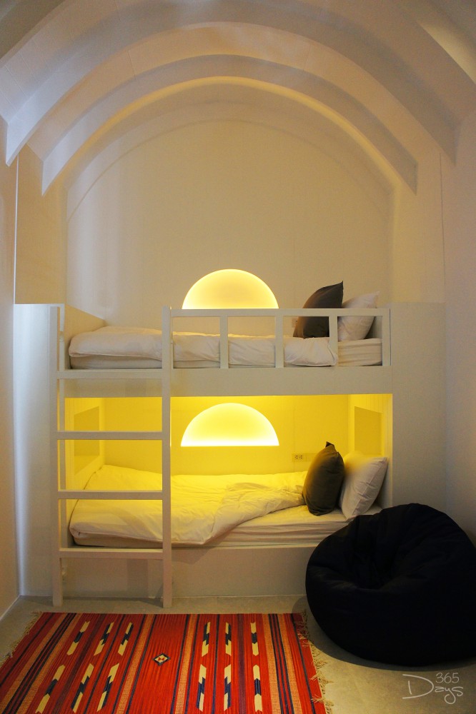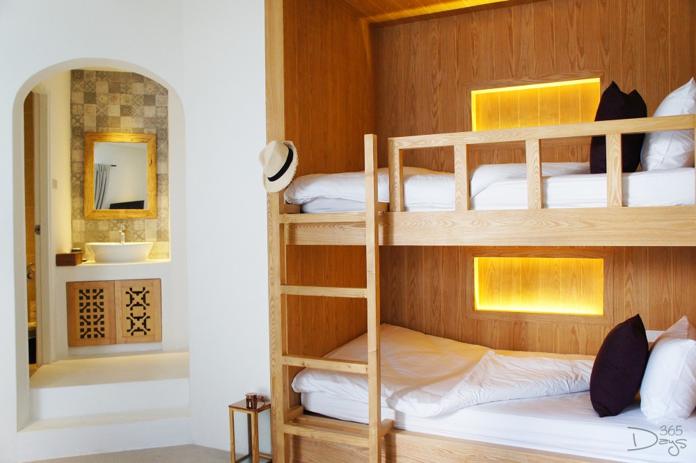 บรรยากาศโซนที่พักใน Santorini Park ‘Stay’ เงียบสงบกว่าที่เราคิดไว้มาก ถึงแม้จะอยู่ในพื้นที่ติดกันกับโซนสวนสนุก แต่ห้องพักทั้ง 34 ห้องกลับไม่ได้ยินเสียงรบกวนให้หนวกหูเลย ในส่วนของห้องพักจะมีให้เลือกหลายอารมณ์ ตั้งแต่ห้องแบบมาตรฐาน Superior Room และ Deluxe Room ที่มีทั้งเตียงคู่และเตียงเดี่ยวให้เลือก แต่วัยรุ่นแบบเราขอแนะนำห้องแบบ Bunk Bed Room ที่มาพร้อมเตียงสองชั้น ให้อารมณ์สนุกๆ เหมือนได้กลับไปเป็นเด็กอีกครั้งเลยล่ะ