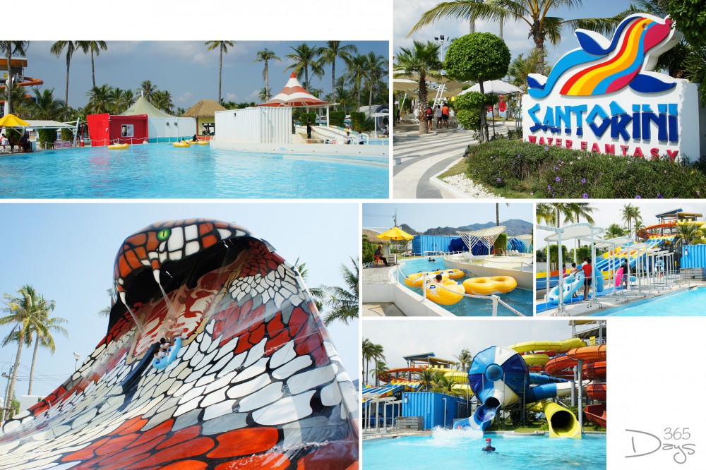 เอาล่ะ...เก็บกระเป๋า สำรวจห้องพักกันคร่าวๆ แล้ว ก็รีบออกไปเริงร่าท้าแดดกันหน่อยดีกว่า เนื่องจากเราเลือกที่พักมาเป็น Package ที่รวมบัตรสวนน้ำมาเรียบร้อยแล้ว เมื่อชุดว่ายน้ำพร้อม บิกินี่พร้อม ก็เพียงแค่เดินข้ามฝั่งมาจากโซนห้องพัก เราก็จะเจอกับสวนน้ำ Santorini Water Fantasy จัดแจงยื่นคูปองที่ด้านหน้าเคาน์เตอร์รับตั๋วผ่านประตูเสร็จสรรพ เรื่องราวต่อจากนี้ไปก็คือความสนุก ความเสียว เสียงหัวเราะ และความชุ่มฉ่ำของน้ำเย็นๆ
