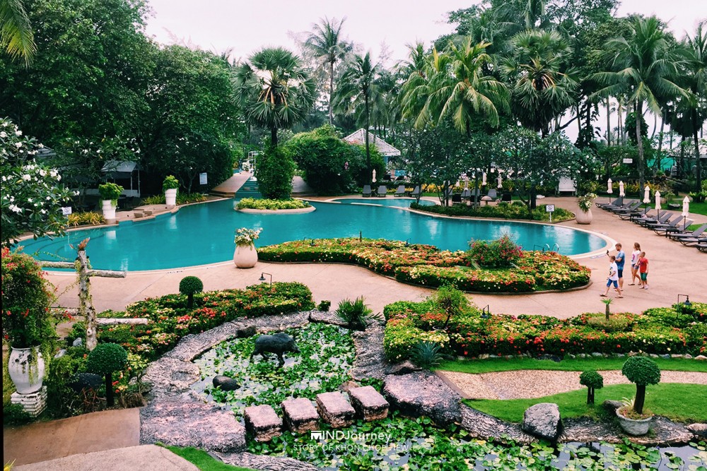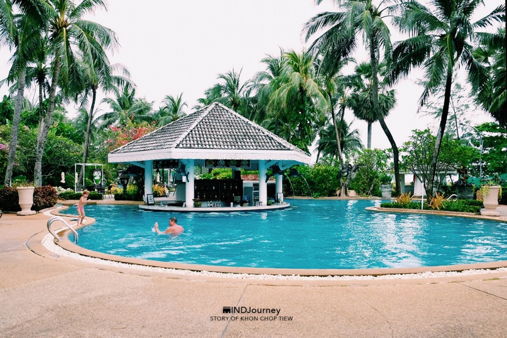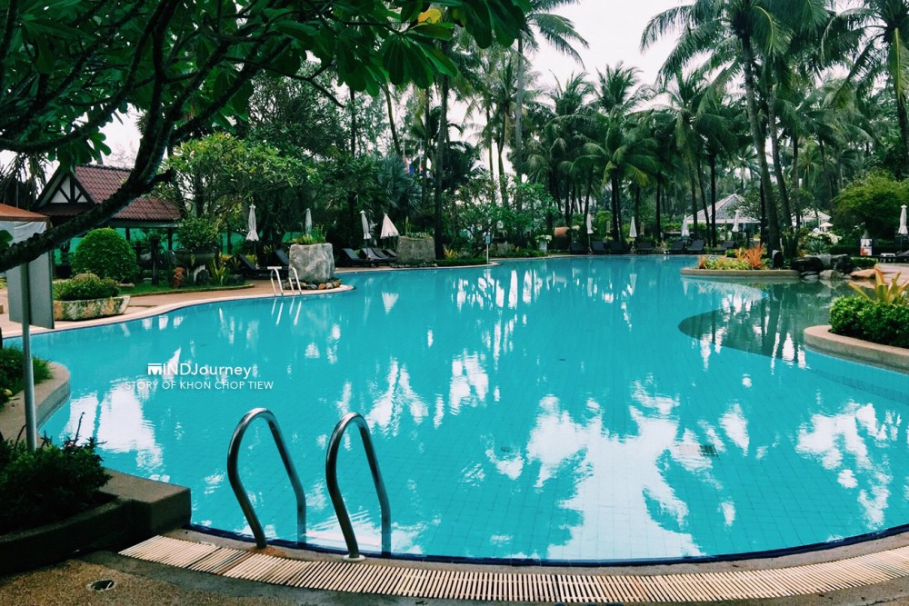 ผ่านสวนกว้างที่เดินเท่าไหร่ก็ยังไม่สิ้นสุด พื้นที่กว้างขวางจริง ๆ และเห็นว่ามีสระน้ำกระจายตัวอยู่ในที่พักแต่ละโซน ถึง 5 สระใหญ่ ๆ บางสระมีบาร์บริการเครื่องดื่มในสระเลย เอ้า! จะเลือกลงสระไหนก็จัดกันไปเล้ย :)
