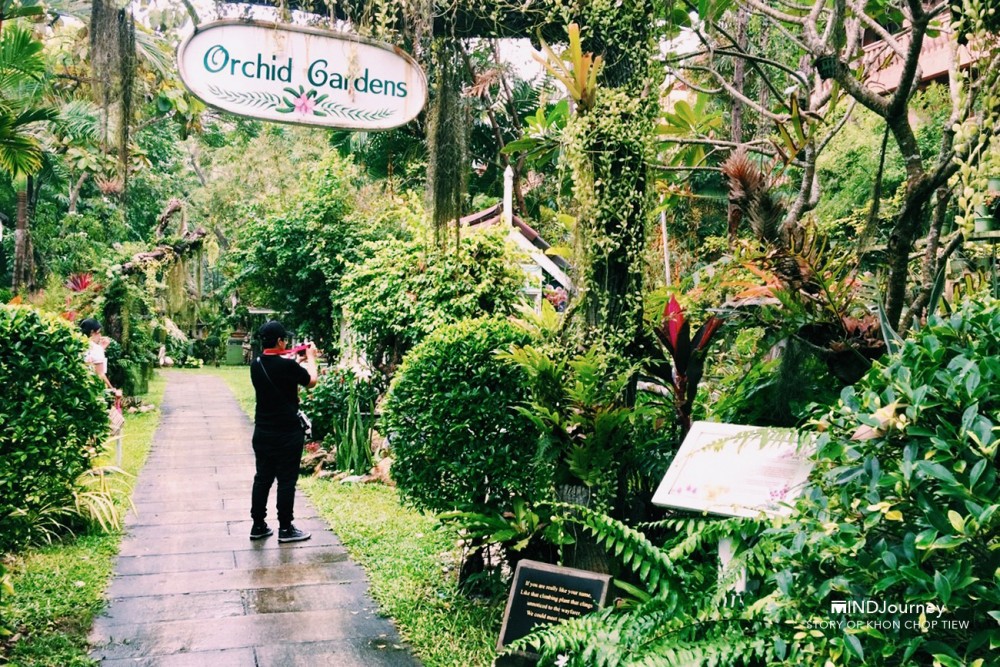จากลานจอดรถจะมองเห็นทางเข้าชมสวน บริเวณนี้ คือ Orchid Gardens สวนที่รวบรวมกล้วยไม้และพันธุ์ไม้ในเขตร้อนชื้นนานาพันธุ์เอาไว้ ภายในสวนปกคลุมด้วยต้นไม้ใหญ่ ร่มรื่น ครึ้มและมีไอชื้นเพราะฝนเพิ่งจะซาไปไม่นาน...