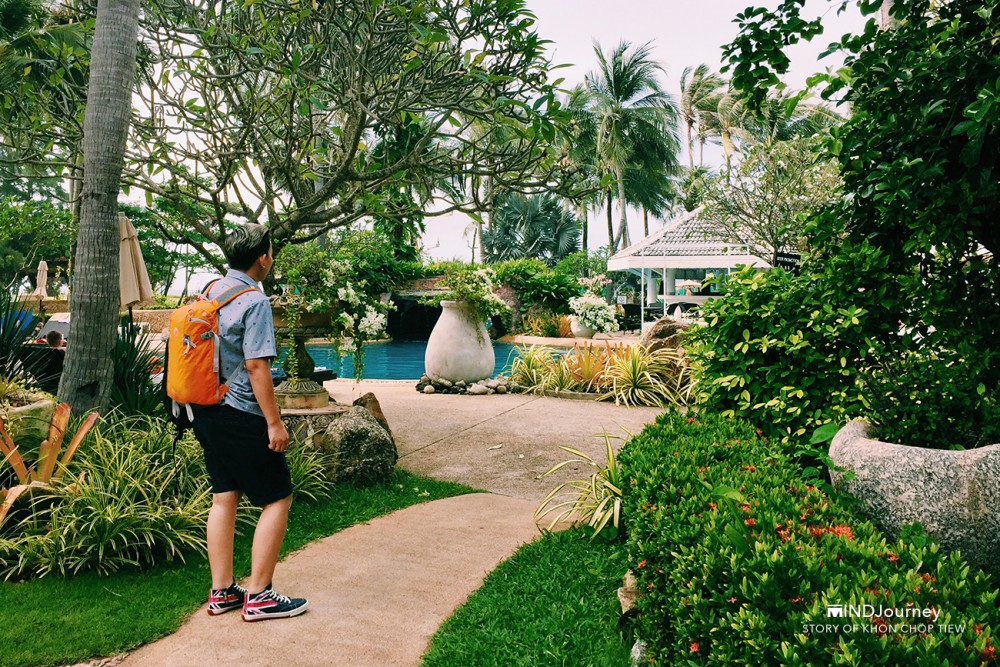 เวลาเจออะไรเพลิน..เพลิน เวลาจะผ่านไปเร็วกว่าที่คิดนะ รู้ตัวอีกทีก็ตอนสาย ๆ อาหารเช้าละลายไปกับเม็ดเหงื่อกับระไอแดดที่เริ่มจัดขึ้นเล็กน้อย เดินลัดเลาะจากสวนมาถึงส่วนที่ติดกับหน้าชายหาด ซึ่งเป็นที่ตั้งของหนึ่งในห้องอาหารน่านั่งของโรงแรม