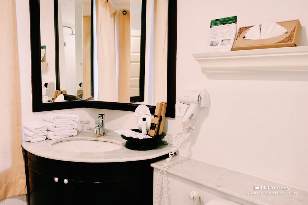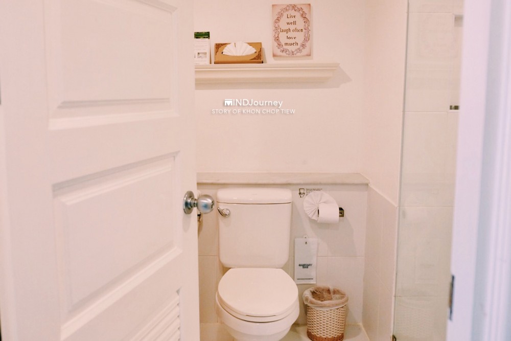 ~ ส่วนของห้องน้ำจัดไว้เป็นสัดส่วน สะอาดสะอ้าน ด้านในมีอ่างอาบน้ำและแบ่งส่วนเปียกส่วนแห้งไว้ พร้อมทั้งจัดเตรียมผ้าเช็ดตัวและเครื่องอาบน้ำไว้ให้ครบเซตเลย