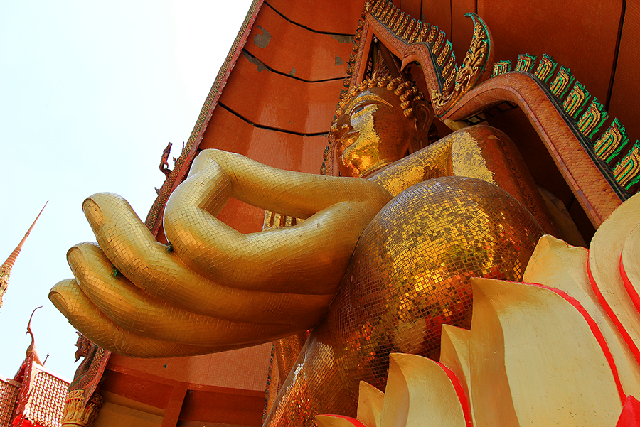 กราบนมัสการพระพุทธรูปปางประทานพรที่ใหญ่ที่สุดของจังหวัดกาญจนบุรีตัวองค์ พระสวยงามประดับ ด้วยโมเสคสีทองทั้งองค์