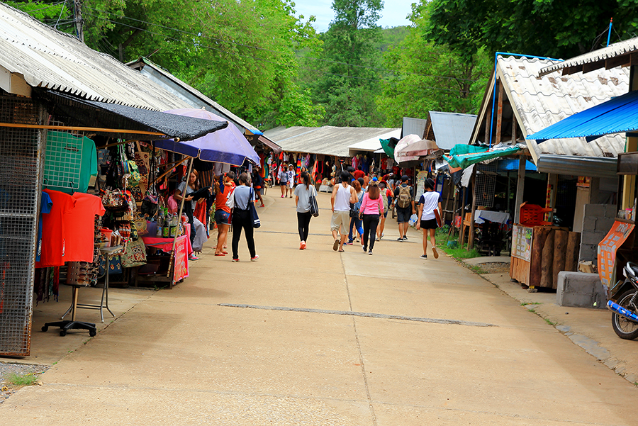 ลานจอดรถมีร้านค้า ของฝากของที่ระลึกมากมาย