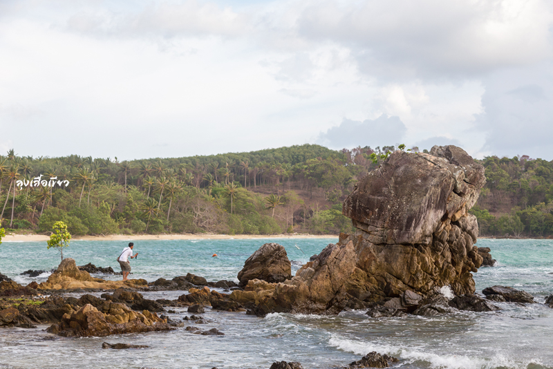 บริเวณอ่าวหัวนอนจะมีก้อนหินขนาดใหญ่โผล่แทรกขึ้นมาจากพื้นทราย ใหญ่แค่ไหนลองเทียบขนาดกับคนดูนะครับ สวยงามแปลกตาดีเหมือนกัน เสียดายที่ผมอยู่ที่นี่ได้ไม่นานเพราะฝนตกไล่หลังมาแล้ว