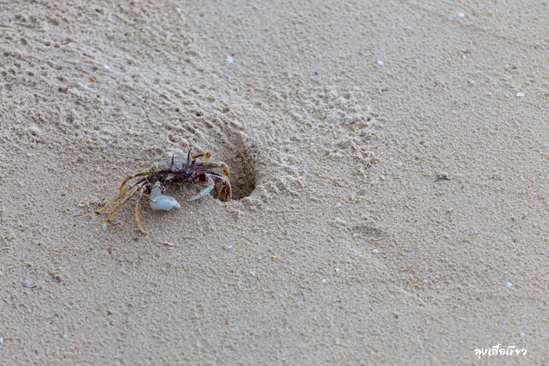 จากนั้นชาวบ้านก็ชวนพูดคุยไปเรื่อยและชี้ให้ดูว่ามีคนกำลังจับปลาทรายกันอยู่ ดูแล้วบริเวณอ่าวหินกองยังคงความสมบูรณ์ของทรัพยากรทางทะเลอยู่พอสมควร เพราะเห็นมีคนมาจับปลาค่อนข้างเยอะ และผมยังได้เห็นปูลมออกหากิน ปูลมที่ผมเคยเห็นส่วนใหญ่จะตัวเล็กเท่าปลายนิ้วก้อย แต่ปูลมที่อ่าวหินกอง ตัวใหญ่พอๆ กับปูเค็มที่นำมาทำส้มตำเลยครับ