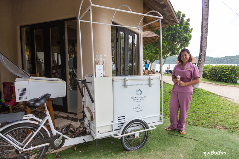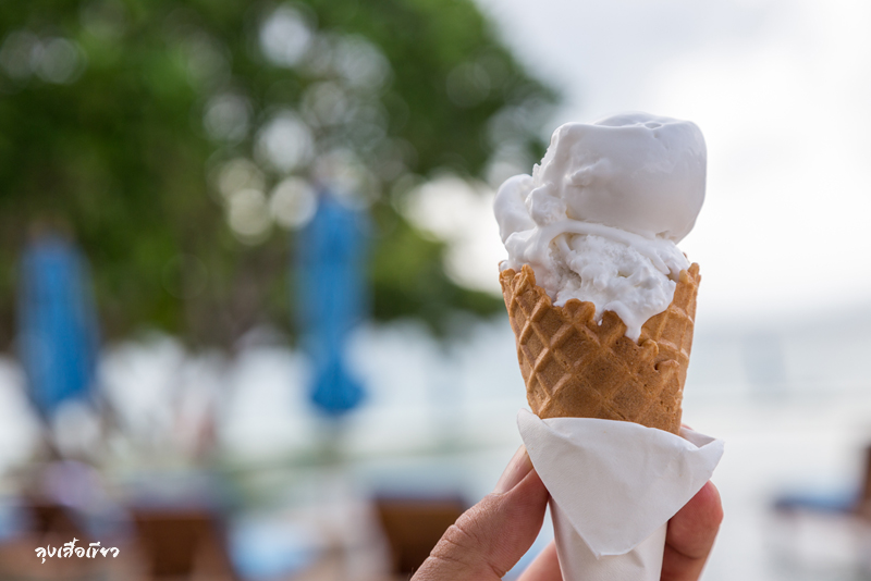 กริ๊ง..กริ๊ง..กริ๊ง..กริ๊ง..ช่วงเวลาที่เป็นไฮไลต์ ไม่อยากให้พลาดด้วยประการทั้งปวง นั่นคือช่วง Afternoon Treat ระหว่างเวลา 14.00-17.00 น. ที่ริมสระว่ายน้ำจะมีบริการไอศกรีมโฮมเมด ฟรี!! แบบไม่มีกั๊ก จะกินกี่โคนก็ได้ วันที่ผมไปมีไอศกรีม 2 รสชาติ คือ มะพร้าว และ องุ่น บอกเลยว่าดีงามทั้ง 2 รสชาติ แต่แนะนำว่าอย่าตักรวมกันในโคนเดียว ให้แยกกันคนละโคนจะได้อรรถรสกว่า  เพราะรสชาติจะได้ไม่ตีกันครับ บอกเลยว่าไม่ว่าคุณจะอยู่ส่วนไหนของรีสอร์ท ไม่ว่าจะทำอะไรอยู่ ขอให้วางมือแล้วไปชิมไอศกรีมกันครับ อร่อยมากๆ