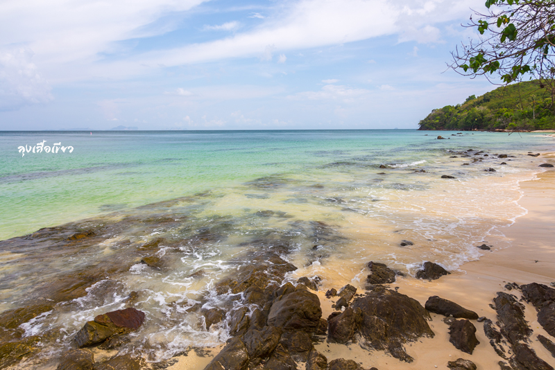 จากแหลมล้าน นั่งรถต่ออีกนิดหน่อยก็มาโผล่ที่อ่าวทราย อ่าวนี้สวยใช้ได้เลย เงียบ สงบ เหมาะกับการมานั่งทอดอารมณ์มาก ที่อ่าวทรายนี้สามารถเล่นน้ำทะเลได้ ถึงแม้ทรายจะไม่ขาวเท่าแหลมหาดแต่ก็ละเอียดนุ่มเท้าไม่แพ้กัน ที่ด้านหัวและท้ายหาดจะเป็นกลุ่มหินเพิ่มความมีเสน่ห์ให้หาดนี้ขึ้นอีกเยอะเลยครับ