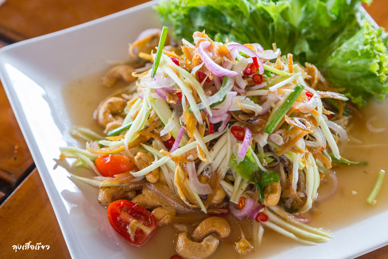 เริ่มที่ยำปลาฉิ้งฉ้าง รสชาติเปรี้ยวเผ็ดกำลังดี ปลาฉิ้งฉ้างแห้งนับเป็นผลิตภัณฑ์ขึ้นชื่อของเกาะยาวใหญ่เลยครับ