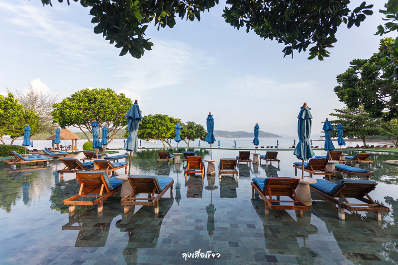 Infinity Pool สระว่ายน้ำส่วนกลาง มีเตียงชายหาดตั้งอยู่กลางสระเลยครับ นักท่องเที่ยวต่างชาติชอบมานอนอาบแดดกันมากๆ