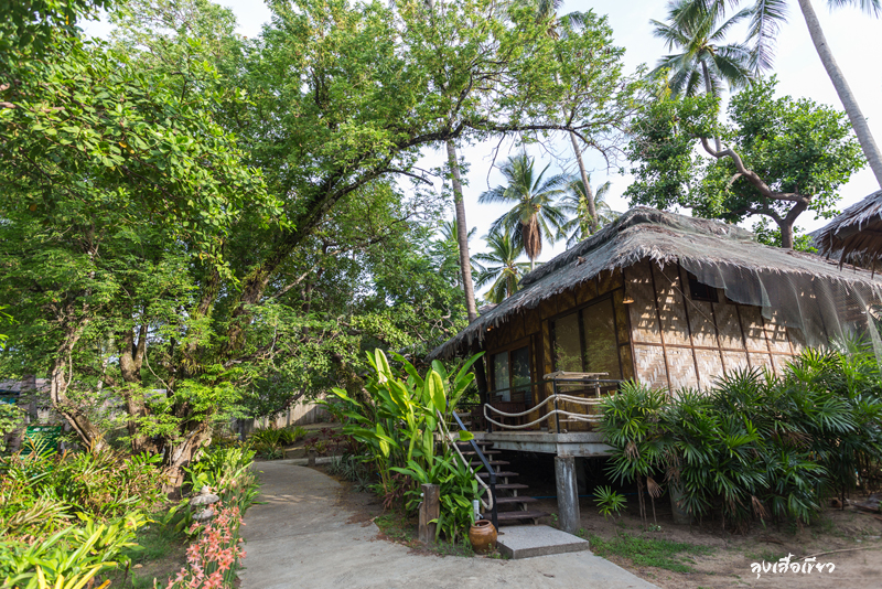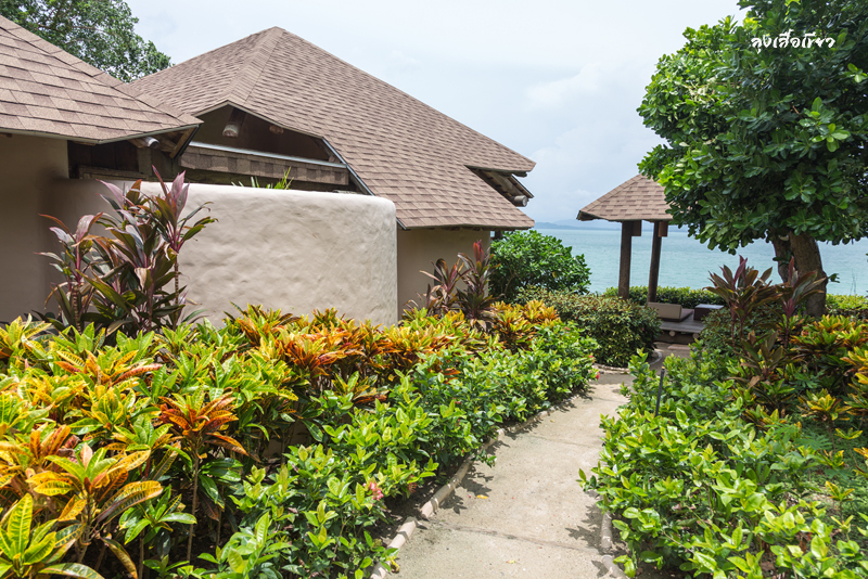 จากจุดนี้น้องพนักงานหน้าตาจิ้มลิ้มคนเดิมพาผมนั่งรถบักกี้ไปยังห้องพักเพื่อทำการ Check in เธอขับลัดเลาะไปตามเส้นทางสายเล็กๆ ที่คดเคี้ยวไปมา พร้อมกับเอ่ยปากบอกว่า เส้นทางคดเคี้ยวหน่อยนะคะ เพราะว่าตอนที่สร้างเส้นทางและสิ่งก่อสร้างต่างๆ ทางรีสอร์ทพยายามรักษาต้นไม้ใหญ่เอาไว้ เส้นทางบางช่วงบางตอนเลยต้องลัดเลาะไปมา บางช่วงของเส้นทางก็มีความลาดชันบ้าง เนื่องจากพื้นที่ในโซนห้องพักจะอยู่บนเนินเขาเตี้ยๆ ครับ