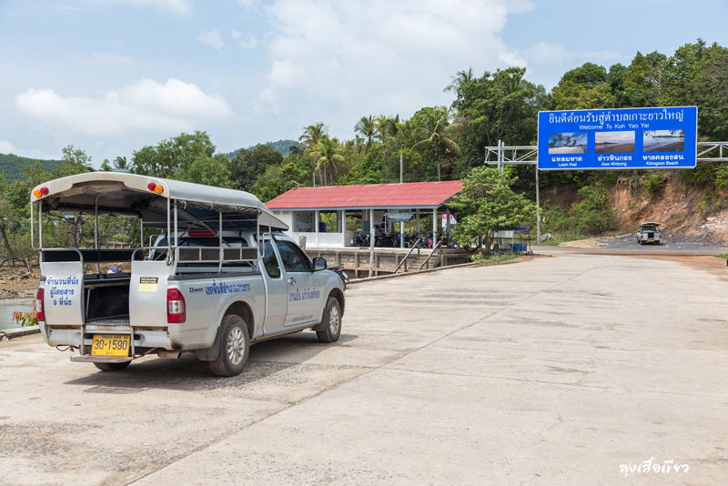 สำหรับการเดินทางบนเกาะยาวใหญ่ ผมยังคงเรียกใช้บริการของบังณีเหมือนเดิม โดยราคาเหมารถอยู่ที่ 1,000 บาท/วัน ราคานี้รวมน้ำมันและพาเที่ยวด้วยแล้ว การใช้รถเหมาผมก็ว่าสะดวกดีนะครับ เพราะตอนที่ผมวางแผนปักหมุดจุดเที่ยวบนเกาะยาวใหญ่นั้น ผมหาพิกัดหาดต่างๆ ใน Google map ไม่เจอเลย แต่ถ้าใครอยากจะประหยัดเงินค่าเหมารถ สามารถเช่ามอเตอร์ไซด์ขี่รอบเกาะได้ โดยสามารถเช่ารถมอเตอร์ไซด์ได้บริเวณใกล้ๆ ท่าเรือ อยู่ตรงอาคารหลังคาสีแดงๆ ข้างป้ายยินดีต้อนรับสู่เกาะยาวใหญ่นั่นแหล่ะครับ ราคาคันละ 300 บาท/วันครับ