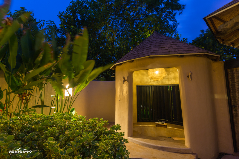 เมื่อเปิดประตู Villa เข้ามา มีแอบยิ้มมุมปากเล็กๆ สองข้างทางเดินเข้าสู่ห้องพักขนาบข้างด้วยสวนหย่อมที่ประดับประดาด้วยพันธุ์ไม้หลากสี ปลายสุดของทางเดินมีศาลาพักผ่อนขนาดย่อมให้นอนเล่นรับลม ชมวิวทะเลแบบส่วนตั๊ว ส่วนตัว