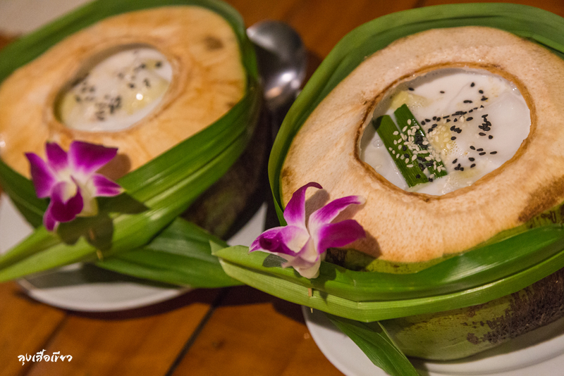 ตบท้ายด้วยของหวานอย่างกล้วยบวชชีมะพร้าวอ่อน ที่ร้านจะใช้กล้วยหอมบ้านแบบสุกกำลังดี ซึ่งถูกใจผมมากๆ เพราะผมชอบกินกล้วยบวชชีแบบนิ่มๆ รสชาติของกล้วยมันจะจี๊ดจ๊าดกว่ากล้วยแบบแข็งๆ ดิบๆ สำหรับน้ำของกล้วยบวชชีก็เข้มข้น หวาน มัน เพิ่มอรรถรสในการเคี้ยวด้วยเนื้อมะพร้าวอ่อนและงาครับ