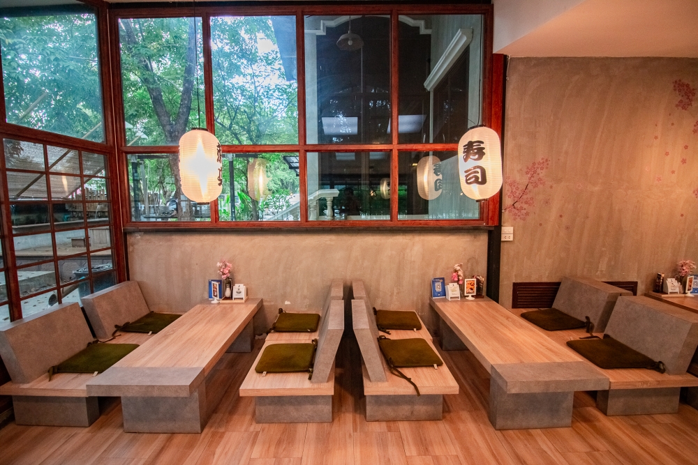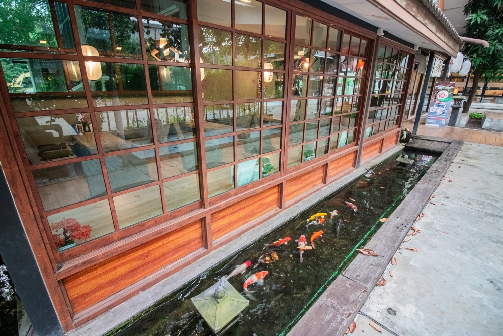 โดยร้านจะตกแต่งเป็นแบบสไตล์ญี่ปุ่น มีบ่อปลาคาร์ฟอยู่บริเวณรอบร้าน ด้านนอกมีมุมถ่ายรูปสวยๆ ได้ฟิลญี่ปุ่นเลยครับ