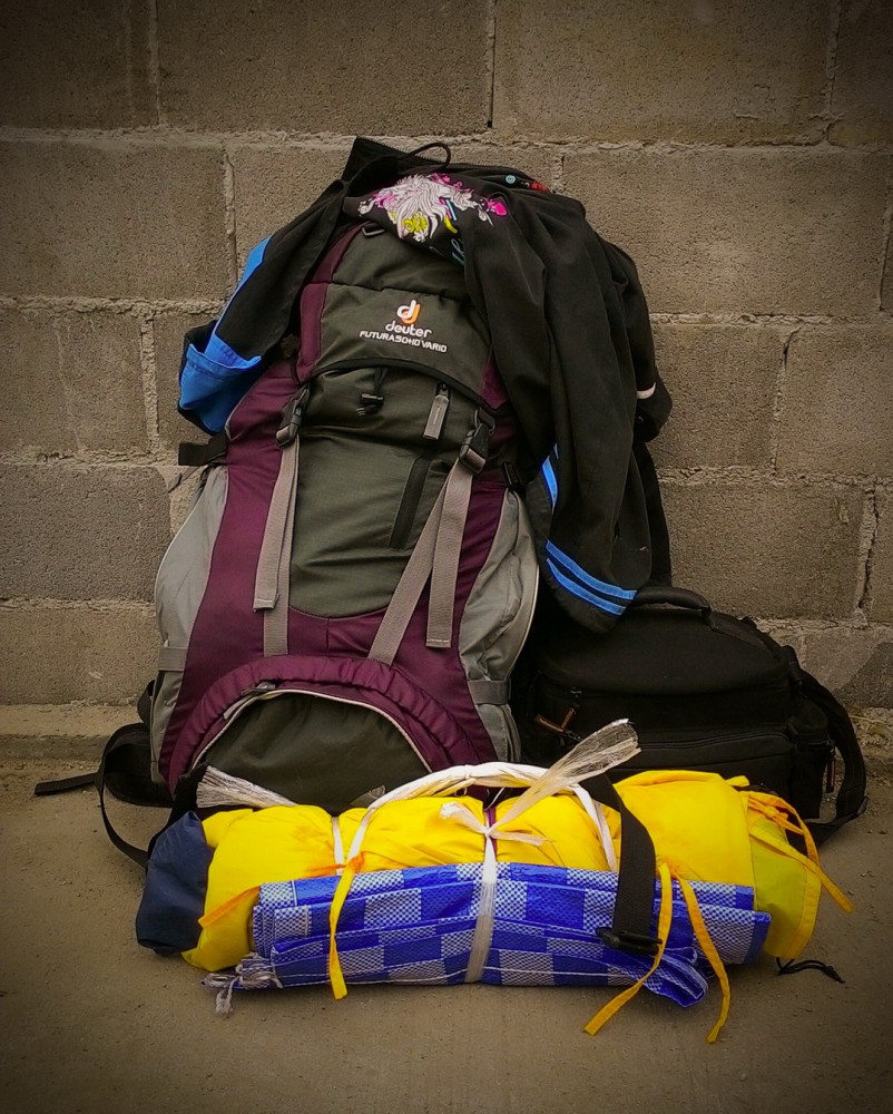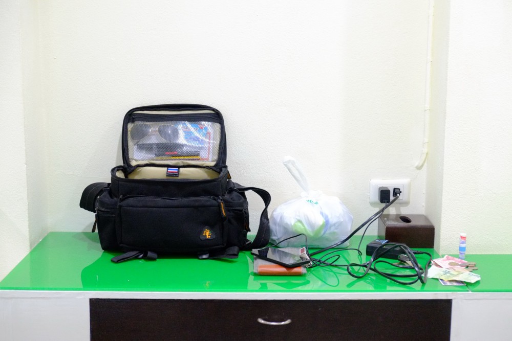 นี่คือสัมภาระของผมครับ มีอะไรก็ยัดลงไปให้หมด แม่นี่รู้ว่าจะไปเที่ยวเลยเอาถุงยามาให้ มีพาราฯ ยาธาตุ ยาดม ยาหม่อง เบตาดีน อีโน น้ำเกลือ พาสเตอร์แปะแผละ ถุงเบ้อเริ่มอะครับ ผมเลยแบ่งไว้หอเพื่อนที่กรุงเทพเอาไปแต่พาราฯ ยาดม ยาธาตุ อีโนกับน้ำเกลือนี่เอาไปอย่างละ 2 ซอง