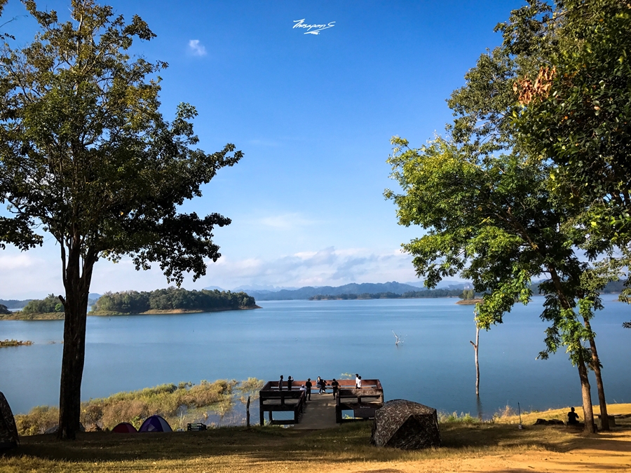 พอได้เบาะรองนอนเรียบร้อย ผมก็เดินไปหาจุดกางเต๊นท์ ซึ่งมีพื้นที่กว้างมาก และหลายจุด พร้อมทั้งคนกำลังกลับ จึงมีพื้นที่ว่างมาก จึงเดินลงไปให้ใกล้ริมเขื่อนเขาแหลมติดแม่น้ำให้มากที่สุด แล้วก็ได้ทำเลที่ต้องการ แบบตื่นมาเจอแม่น้ำเลย คริๆ หน้าจุดกางเต๊นท์ของผม ก็มีท่อนไม้ทำเป็นม้านั่ง เลยนั่งพักสักพัก ตอนนี้ก็เวลาประมาณ 14.30 น. หลังจากนั้นก็เริ่มกางเต๊นท์เลย (เริ่มง่วงนิดๆ เพลียจากการเดินทาง) พอกางเต๊นท์เสร็จก็งีบไปสักชั่วโมง
