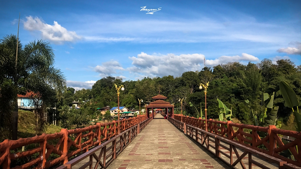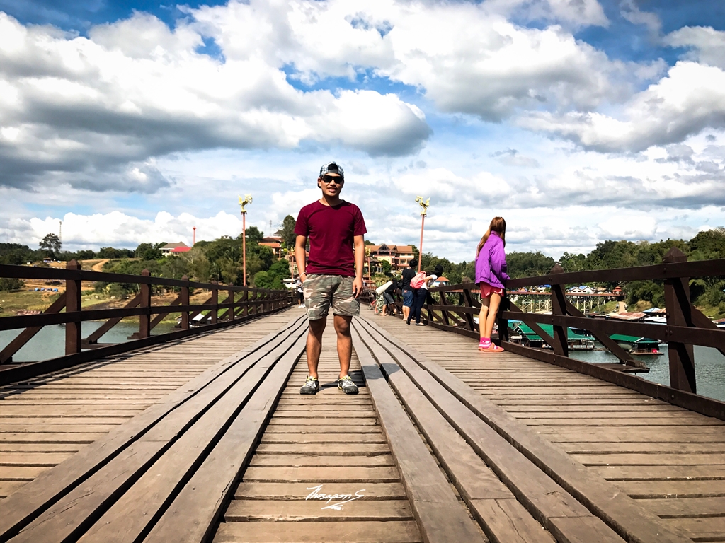 ผมรอรถเมล์แดงสักพักก็ยังไม่มา ก็ครึ่งชั่วโมงแล้วล่ะ รอไปกินหนมไป เริ่มมีความลังเลแล้วล่ะ ฮ่าๆๆๆ ผมจึงตัดสินใจโบกรถนักท่องเที่ยวที่เพิ่งออกมาจากป้อมปี่ แล้วไปสะพานมอญเหมือนกัน ติดรถไป ได้ผลแฮะ ต้องขอบคุณคุณพี่ที่ให้ติดรถมาด้วยมากๆ นั่งกระบะหลัง ลมตีหน้าเย็นสบายเลย