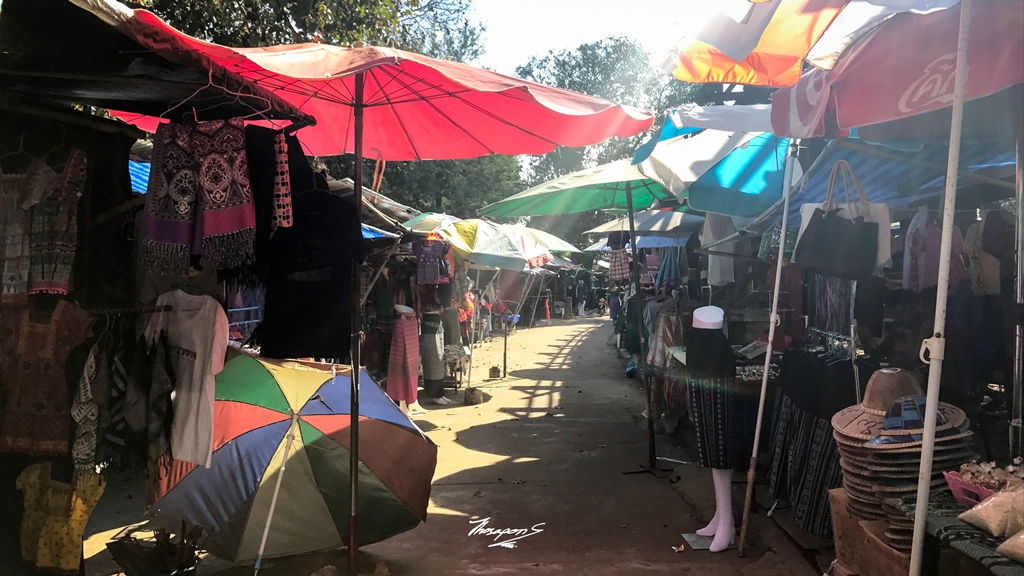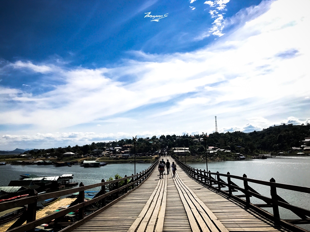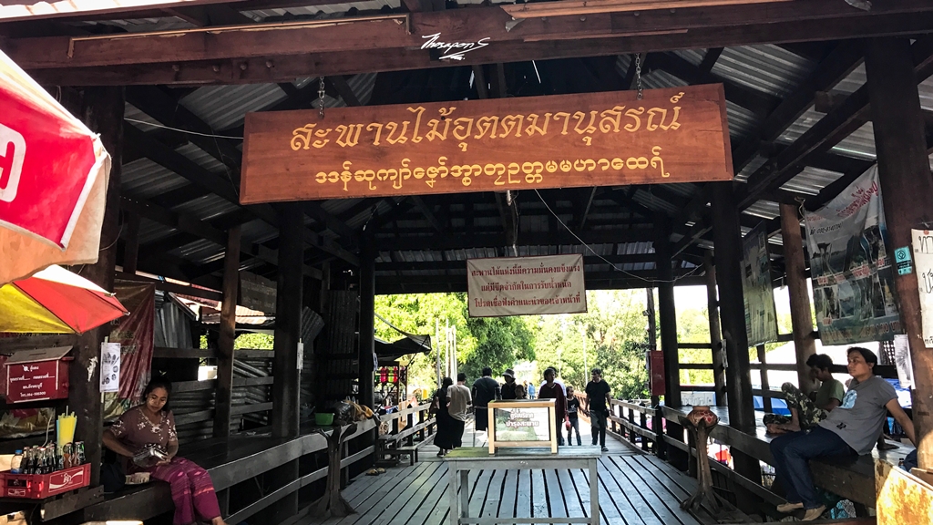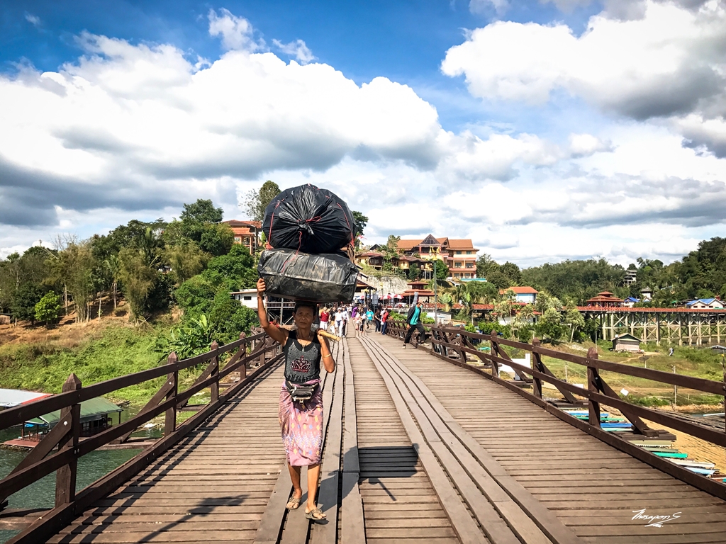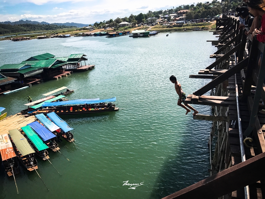 ของที่ขายส่วนใหญ่จะเป็นของชาวมอญ หนักไปทางของผู้หญิงเยอะครับ ผมก็เลยเดินดูรอบๆ ระหว่างเดินก็จะมีพวกลูกเรือชวนไปดูวัดต่างๆ บอกไปวัดโน่น วัดนี่ แต่ผมไม่ได้ไปหลอกครับ เลยเดินเล่นอยู่บนสะพาน มีเด็กกระโดน้ำจากสะพานลงไปที่แม่น้ำให้ดู ผมก็ให้ทริปไปเล็กน้อย