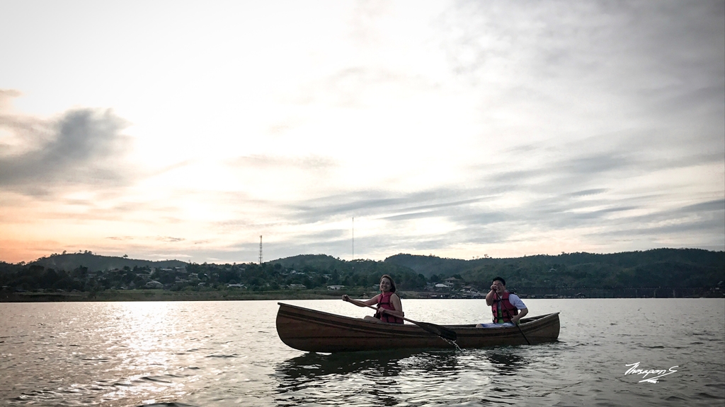 หลังจากนั่งเอาขาแช่น้ำไปสักพักก็เริ่มเย็น อากาศก็เริ่มเย็นลง พอดีมีพี่ๆที่มาพักเช่าเรือแคนนูนมาพายเล่นกัน ผมก็เลยถือโอกาสเก็บภาพไว้ซะหน่อย ผ่านไปประมาณชั่วโมงพี่เขาก็ชวนเล่นน้ำด้วยกัน ผมก็ลงไปเล่นกับเขาแหละ สนุกดี ทำความรู้จักกันไว้ ประจวบเหมาะมีเพื่อนเต๊นท์ข้างๆกลับมาพอดี เลยลงมาเล่นน้ำด้วยกัน ทำความรู้จักกันไปอีกกรุ๊ป พอพระอาทิตย์เริ่มตกทุกคนก็เริ่มขึ้นจากน้ำไปนั่งดู บ้างก็ถ่ายพระอาทิตย์ตก วันนี้พระอาทิตย์สวยมากครับ ไม่มีเมฆมาบังด้วย ก็เลยได้รูปสวยๆกันไปตามระเบียบ