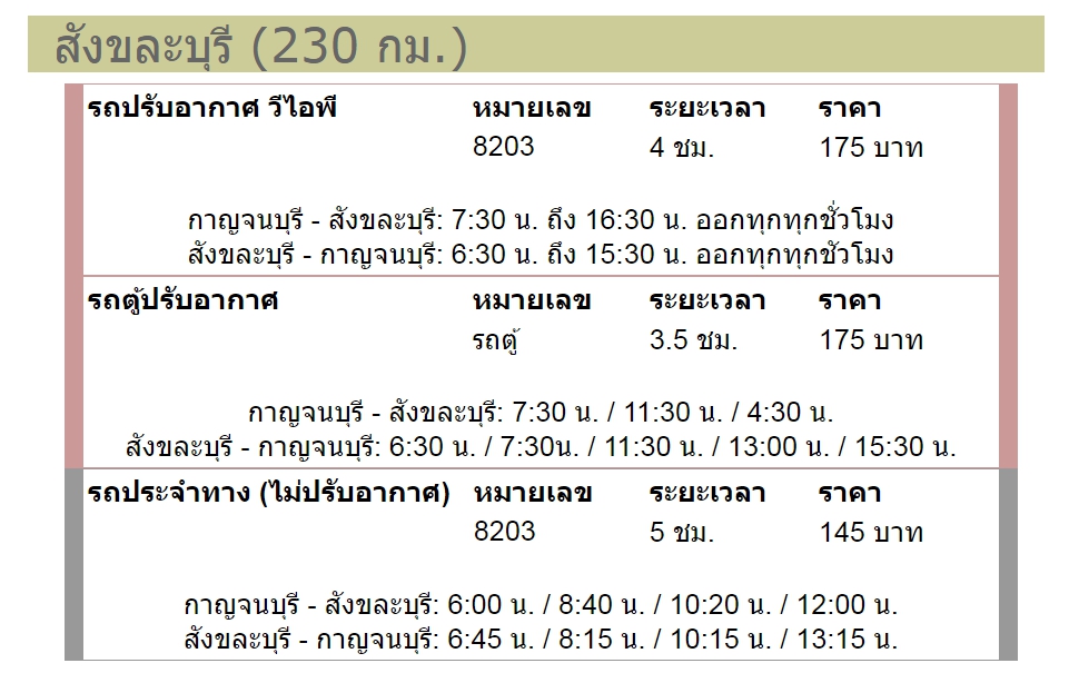 ตารางรถประจำทางกาญจนบุรี - สังขละบุรี