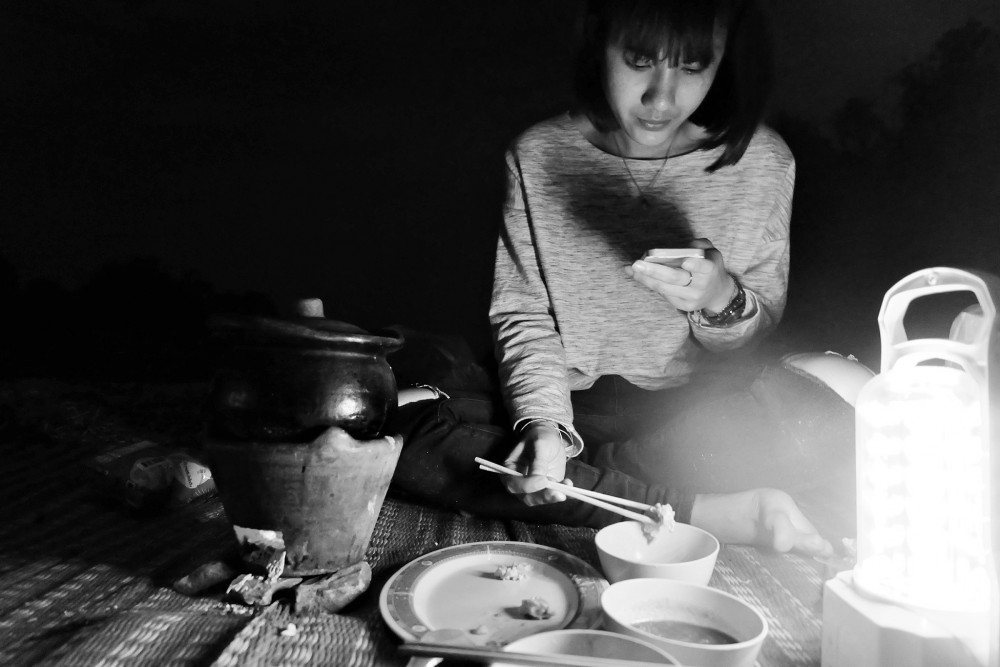 แทบจะตีกันตายกับแฟน หิวก็หิว หนาวก็หนาว มืดก็มืด ผมเลยตัดสินใจไปขอถ่านที่เค้าติดแล้วจากเต็นท์ข้างๆมาเป็นเชื้อไฟเราจึงได้กินกัน