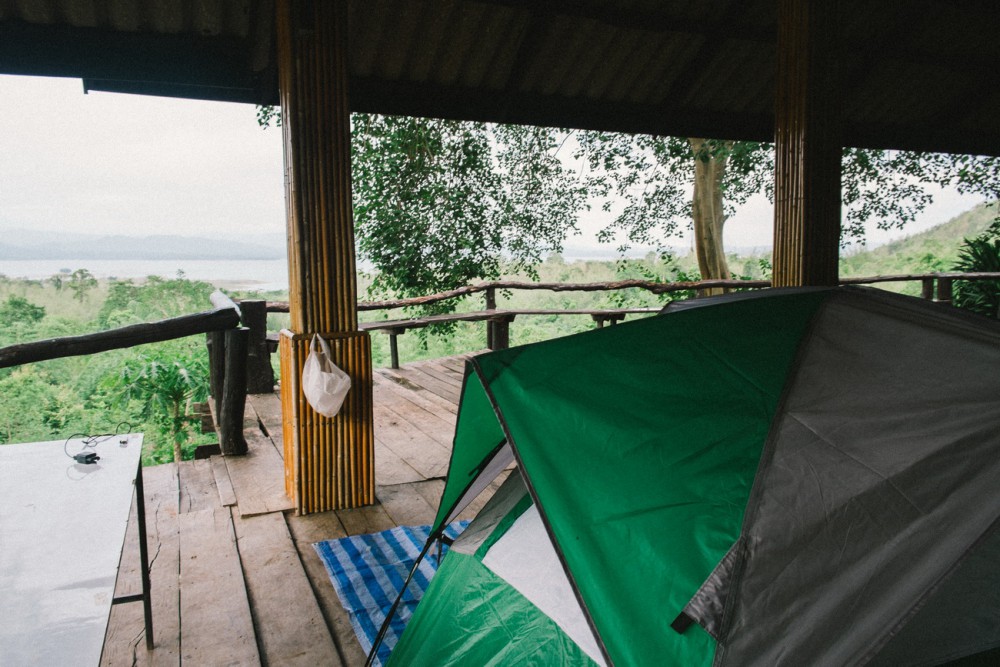นอนได้แป๊ปหนึ่งก็วูบหลับเลยผมอะ ภาพตัดตื่นมาอีกทีเย็นๆ น้องเค้ากลับมาพอดี ผมก็ถาม “ไง ไปชั้นเจ็ดเหนื่อยไหม” น้องบอก “พอได้ครับ” เดี๋ยวพรุ้งนี้เช้ารู้เลยว่าพอได้นี่ได้ขนาดไหน และแล้วฝนก็ตก ผมเลยต้องย้ายเต็นท์ไปนอนบนศาลา น้องนักศึกษาคนนั้นก็มาด้วยครับ เพราะแถวที่ผมเลือกมันเงียบหน่อย ตอนบ่ายๆมีนักท่องเที่ยวมากางเต็นท์แถวที่นอนที่เดิมสิบกว่าคน คาดว่ากลางคืนจะมีปาร์ตี้รอบกองไฟผมกับน้องเลยปรีกวิเวกมาแถวนี้