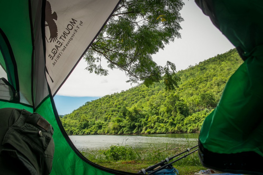 กางเสร็จน้องนักศึกษาเค้าขอตัวไปลุยน้ำตก ส่วนผมก็นอนเล่นสักพัก นี้เป็นภาพบรรกากาศจากภายในเต็นท์ครับ ที่พักวิวสุดหรูในราคาคืนละ 30 บาท