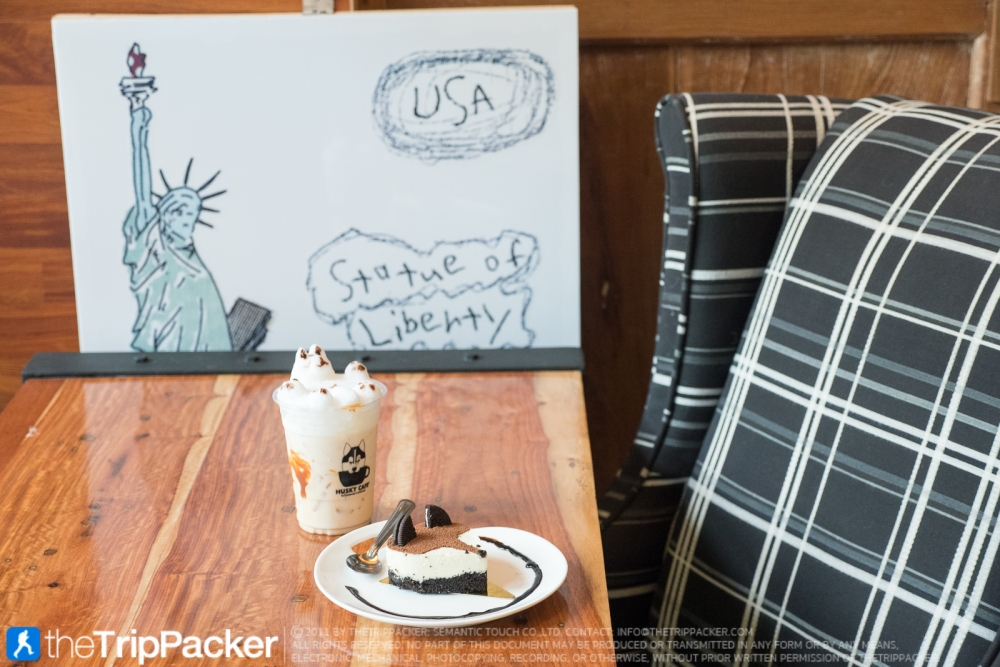ถ้าหากยังไม่ถึงรอบที่ให้เราเข้าไปเล่นกับน้องฮัสกี้ ที่นี่จะมีคาเฟ่เล็ก ๆ ไว้คอยบริการ ให้เราเข้าไปพักในห้องแอร์เย็นฉ่ำพร้อมมีเมนูเครื่องดื่ม และขนมให้เลือกมากมาย เมนูที่เราแอบมองแล้วว่าต้องสั่งมาแทบทุกโต๊ะก็จะเป็นเมนู Banoffee signature ของทางร้าน หรือจะเป็น Blueberry Cheesepie ,Strawberry Cheesepie หน้าตาก็น่ารัก และรสชาติก็อร่อยไม่แพ้กัน ส่วนเครื่องดื่มก็รสชาติดี สั่งหวานน้อยก็ได้หวานน้อยสมใจ ที่ชอบที่สุดคงเป็น 3D Foam Milk ที่ไม่ว่าจะสั่งเมนูเครื่องดื่มไหนเราก็สามารถเพิ่มฟองนมน้องหมาฮัสกี้นี่เข้าไปได้ตามใจเลย